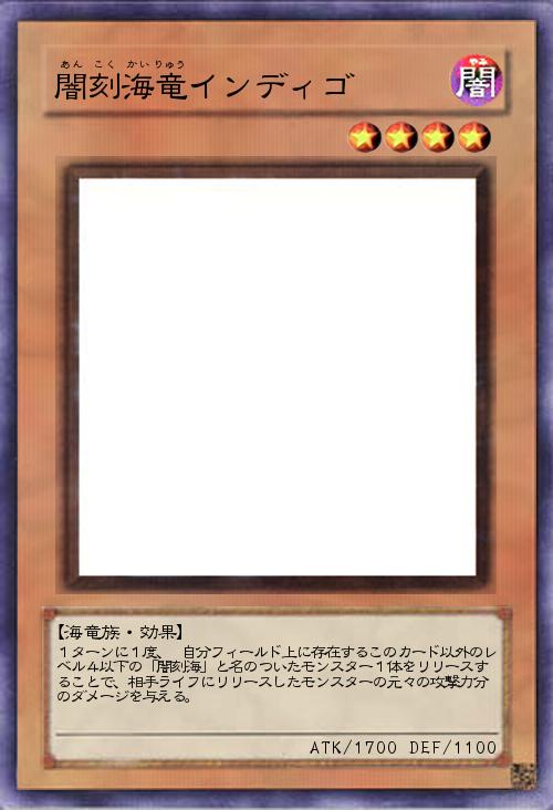 | 1ターンに1度、自分フィールド上に存在するこのカード以外のレベル4以下の「闇刻海」と名のついたモンスター1体をリリースすることで、相手ライフにリリースしたモンスターの元々の攻撃力分のダメージを与える。 | |||