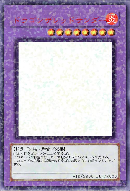 ボルトドラゴン+バーニングドラゴン このカードが戦闘を行ったとき自分は500ダメージを受ける。 このカードの攻撃力は墓地のドラゴンの数×300ポイントアップする。 |