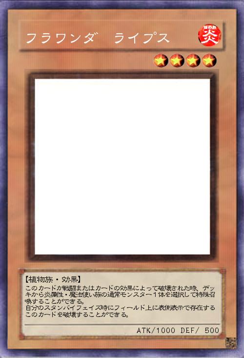 このカードが戦闘またはカードの効果によって破壊された時、デッキから炎属性・魔法使い族の通常モンスター1体を選択して特殊召喚することができる。 自分のスタンバイフェイズ時にフィールド上に表側表示で存在するこのカードを破壊することができる。 |