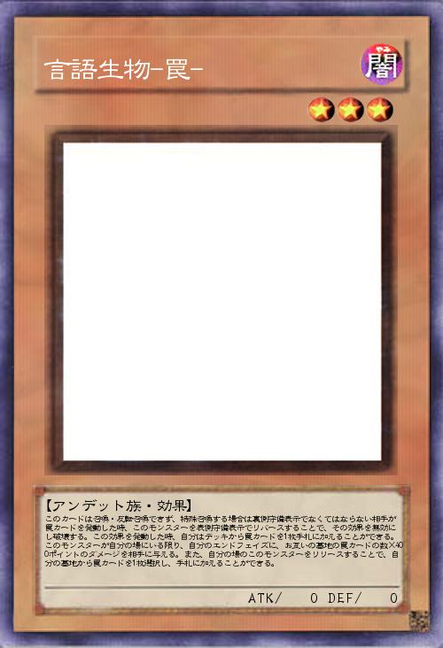 「言語生物第四弾。こいつも相方同様、最後の能力はリリース必須ですので、実際はあってないようなものです。罠を妨害できますが、近年は魔法カードの方が使われますからねぇ……。」(2012-10-01 09:53)