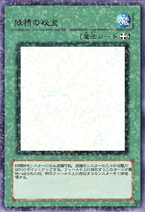 | 妖精族モンスターにのみ装備可能。装備モンスターの元々の攻撃力は800ポイントアップする。フィールド上に存在するこのカードが墓地へ送られた時、相手フィールド上に存在するモンスターを1体破壊する。 | |||