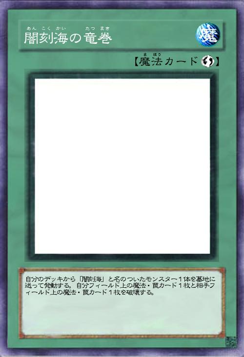 | 自分のデッキから「闇刻海」と名のついたモンスター1体を墓地に送って発動する。自分フィールド上の魔法・罠カード1枚と相手フィールド上の魔法・罠カード1枚を破壊する。 | |||
