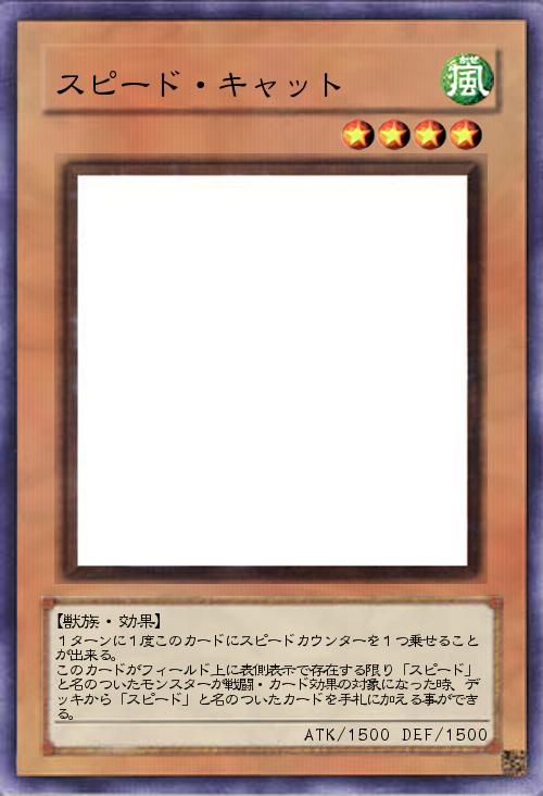 1ターンに1度このカードにスピードカウンターを1つ乗せることが出来る。 このカードがフィールド上に表側表示で存在する限り「スピード」と名のついたモンスターが戦闘・カード効果の対象になった時、デッキから「スピード」と名のついたカードを手札に加える事ができる。 |