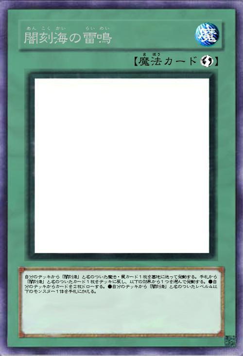 | 自分のデッキから「闇刻海」と名のついた魔法・罠カード1枚を墓地に送って発動する。手札から「闇刻海」と名のついたカード1枚をデッキに戻し、以下の効果から1つを選んで発動する。●自分のデッキからカードを2枚ドローする。●自分のデッキから「闇刻海」と名のついたレベル4以下のモンスター1体を手札に加える。 | |||