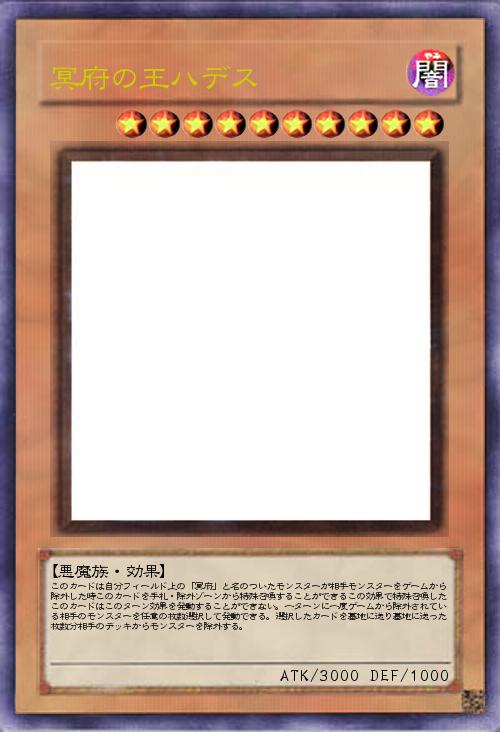 | このカードは自分フィールド上の「冥府」と名のついたモンスターが相手モンスターをゲームから除外した時このカードを手札・除外ゾーンから特殊召喚することができるこの効果で特殊召喚したこのカードはこのターン効果を発動することができない。一ターンに一度ゲームから除外されている相手のモンスターを任意の枚数選択して発動できる。選択したカードを墓地に送り墓地に送った枚数分相手のデッキからモンスターを除外する。 | |||
