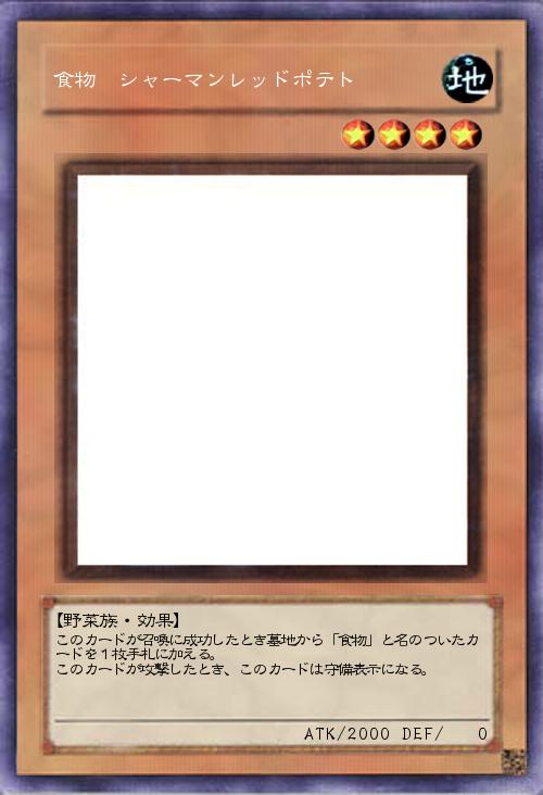 このカードが召喚に成功したとき墓地から「食物」と名のついたカードを1枚手札に加える。 このカードが攻撃したとき、このカードは守備表示になる。 |
