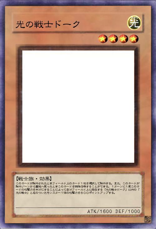 | このカードが除外されたときフィールド上のカード1枚を選択して除外する。また、このカードが除外ゾーンから墓地へ戻ったときこのカードを特殊召喚することができる。1ターンに1度このカードの攻撃力を半分にすることによって自分フィールド上に存在する「光の戦士ドーク」以外の「光の戦士」と名のついたモンスター1体の攻撃力を800ポイントアップする。 | |||