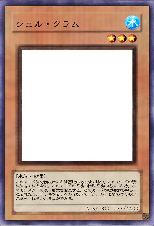 | このカードは守備表示または墓地に存在する場合、このカードの種族は岩石族となる。このカードの召喚・特殊召喚に成功した時、このモンスターの表示形式を変更する。このカードが破壊され墓地へ送られた時、デッキからレベル4以下の「シェル」と名のつくモンスター1体を加える事ができる。 | |||