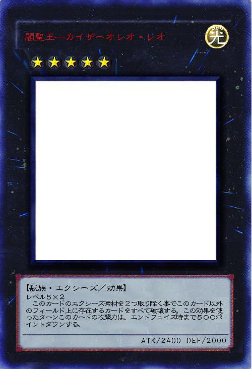レベル5×2 このカードのエクシーズ素材を2つ取り除く事でこのカード以外のフィールド上に存在するカードをすべて破壊する。この効果を使ったターンこのカードの攻撃力は、エンドフェイズ時まで500ポイントダウンする。 |