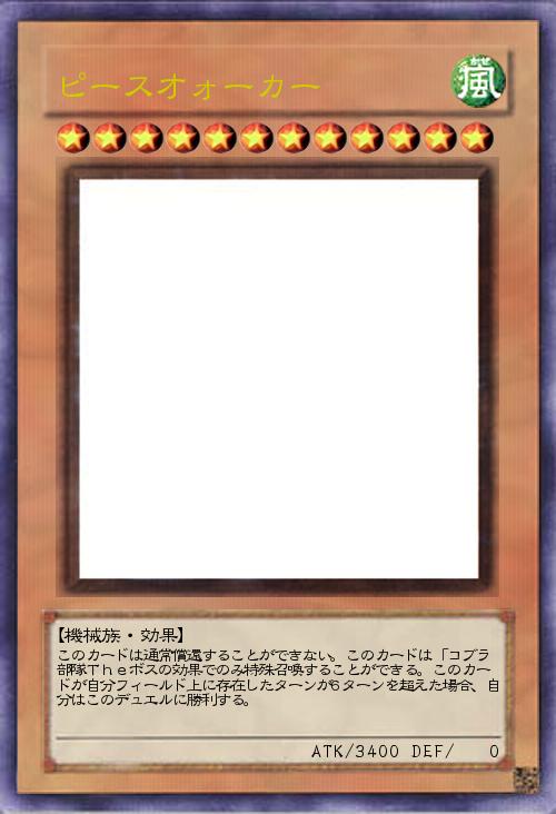| このカードは通常償還することができない。このカードは「コブラ部隊Theボスの効果でのみ特殊召喚することができる。このカードが自分フィールド上に存在したターンが6ターンを超えた場合、自分はこのデュエルに勝利する。 | |||