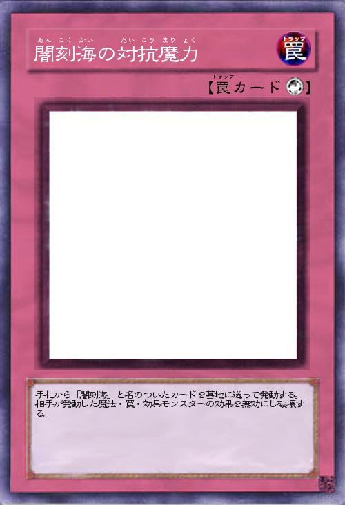 手札から「闇刻海」と名のついたカードを墓地に送って発動する。 相手が発動した魔法・罠・効果モンスターの効果を無効にし破壊する。 |