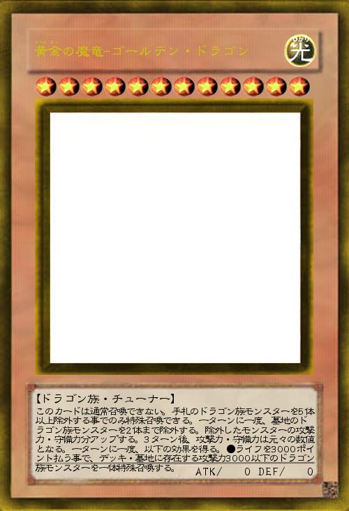 | このカードは通常召喚できない。手札のドラゴン族モンスターを5体以上除外する事でのみ特殊召喚できる。一ターンに一度、墓地のドラゴン族モンスターを2体まで除外する。除外したモンスターの攻撃力・守備力分アップする。3ターン後、攻撃力・守備力は元々の数値となる。一ターンに一度、以下の効果を得る。●ライフを3000ポイント払う事で、デッキ・墓地に存在する攻撃力3000以下のドラゴン族モンスターを一体特殊召喚する。 | |||