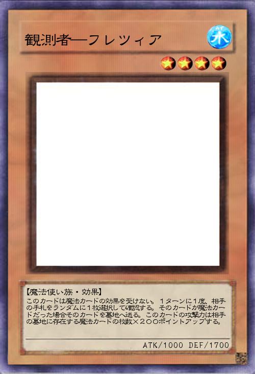 「既に投稿しているのですが観測者シリーズは未だこの1枚+空気だったので説明も兼ねて再投稿。【観測者:共通効果「このカードは魔法カードの効果を受けない」を持つ魔法使い族のカード群。属性はばらばら。「術式」と名のつく魔法カードを扱います。え、魔導に似てる?キ、キノセイデスヨー】とりあえず今日からはずっと観測者のターンです(´-`)」(2012-10-20 16:52)