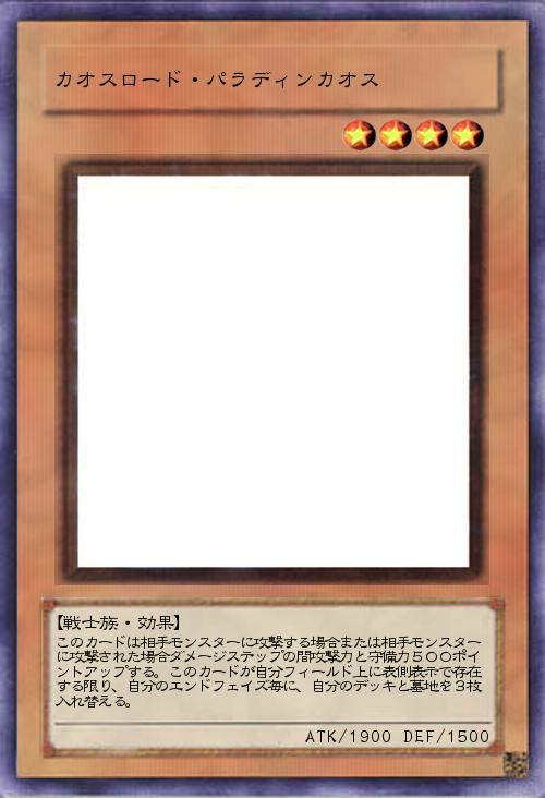| このカードは相手モンスターに攻撃する場合または相手モンスターに攻撃された場合ダメージステップの間攻撃力と守備力500ポイントアップする。このカードが自分フィールド上に表側表示で存在する限り、自分のエンドフェイズ毎に、自分のデッキと墓地を3枚入れ替える。 | |||