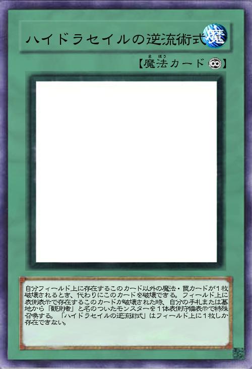 | 自分フィールド上に存在するこのカード以外の魔法・罠カードが1枚破壊されるとき、代わりにこのカードを破壊できる。フィールド上に表側表示で存在するこのカードが破壊された時、自分の手札または墓地から「観測者」と名のついたモンスターを1体表側守備表示で特殊召喚する。「ハイドラセイルの逆流術式」はフィールド上に1枚しか存在できない。 | |||