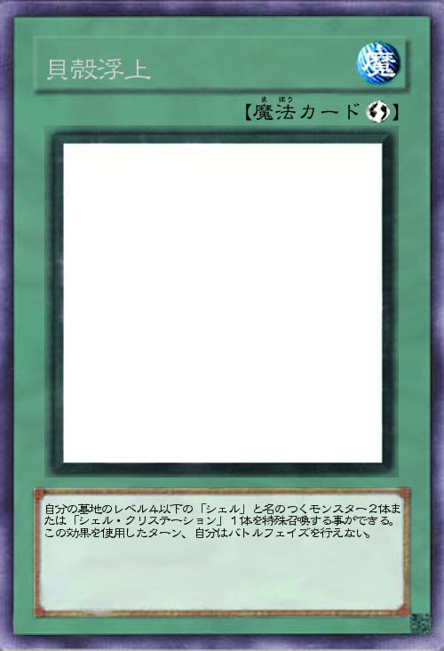 | 自分の墓地のレベル4以下の「シェル」と名のつくモンスター2体または「シェル・クリステーション」1体を特殊召喚する事ができる。この効果を使用したターン、自分はバトルフェイズを行えない。 | |||