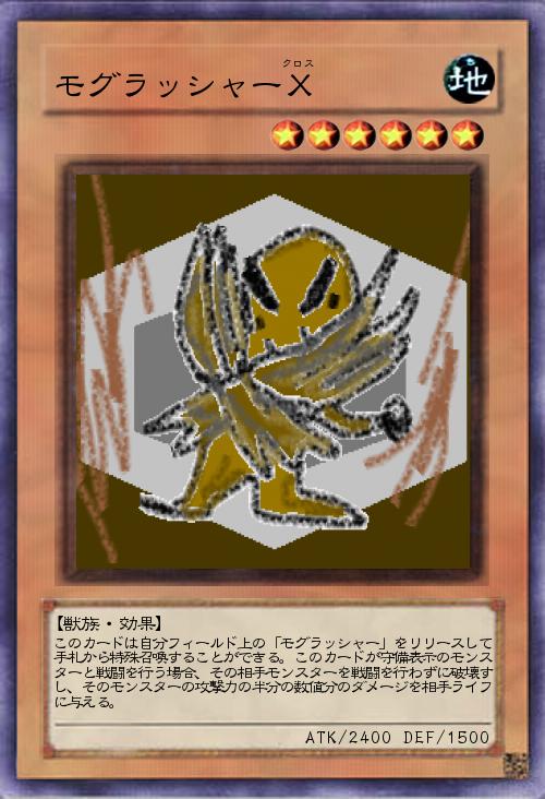 | このカードは自分フィールド上の「モグラッシャー」をリリースして手札から特殊召喚することができる。このカードが守備表示のモンスターと戦闘を行う場合、その相手モンスターを戦闘を行わずに破壊すし、そのモンスターの攻撃力の半分の数値分のダメージを相手ライフに与える。 | |||