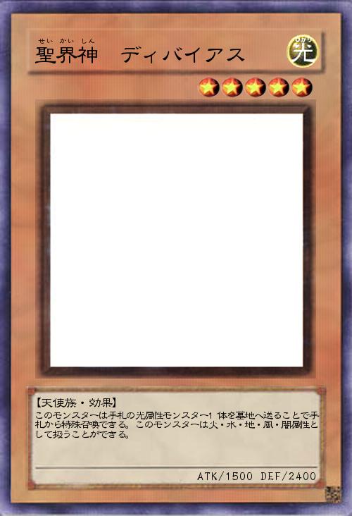 「「聖界神」8枚目です。自分は特に強力なカードに仕上げたつもりはありませんが、こいつとなんかのカードとでコンボができそうです。あれば教えてくださーい。次からは融合モンスターを投稿していくつもりです。」(2012-10-29 10:57)