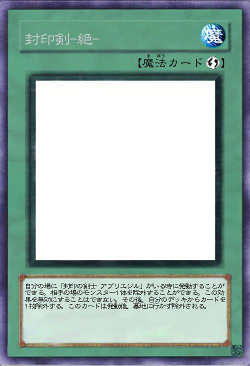 | 自分の場に「封印の剣士 アブリエジル」がいる時に発動することができる。相手の場のモンスター1体を除外することができる。この効果を無効にすることはできない。その後、自分のデッキからカードを1枚除外する。このカードは発動後、墓地に行かず除外される。 | |||