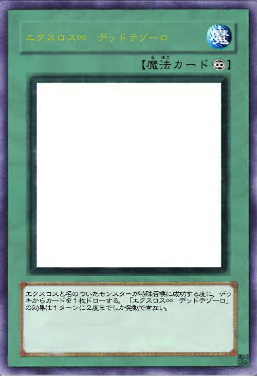 | エクスロスと名のついたモンスターが特殊召喚に成功する度に、デッキからカードを1枚ドローする。「エクスロス∞ デッドテゾーロ」の効果は1ターンに2度までしか発動できない。 | |||