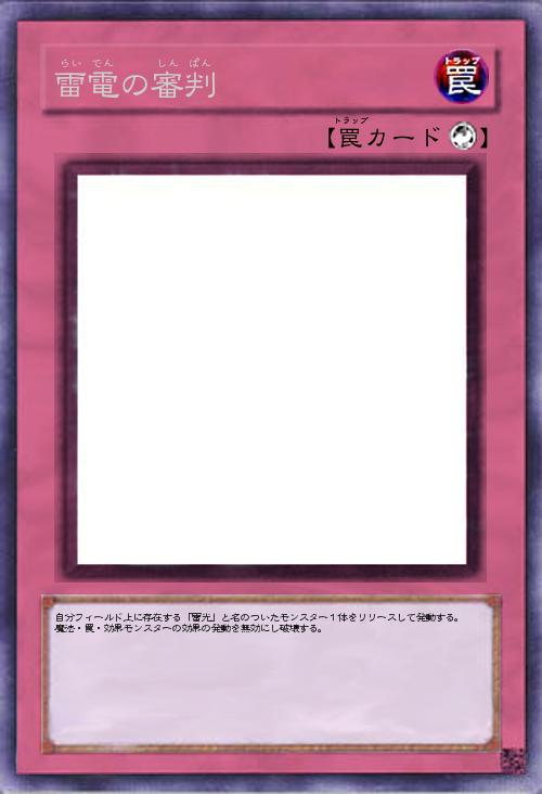 | 自分フィールド上に存在する「雷光」と名のついたモンスター1体をリリースして発動する。 魔法・罠・効果モンスターの効果の発動を無効にし破壊する。 | |||