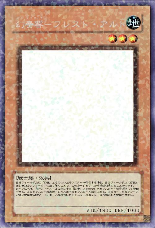 | 自分フィールド上に「幻奏」と名のついたモンスターが存在する場合、自分フィールド上に存在する幻奏符カウンターを1つ取り除くことで、このカードを手札から特殊召喚することができる。1ターンに一度、自分フィールド上に存在する「幻奏」と名のついたモンスター1体を選択して発動できる。このモンスターの属性・レベルはそのモンスターと同じになる。このカードをエクシーズ召喚に使用する場合、「幻奏」と名のついたモンスターのエクシーズ召喚にしか使用できない。 | |||