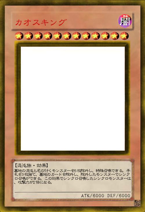 | 墓地の混沌と名の付くモンスターを5枚除外し、特殊召喚できる。手札を3枚捨て、墓地のカードを除外し、除外したモンスターでシンクロ召喚ができる。この効果でシンクロ召喚したシンクロモンスターは、攻撃力が2倍になる。 | |||