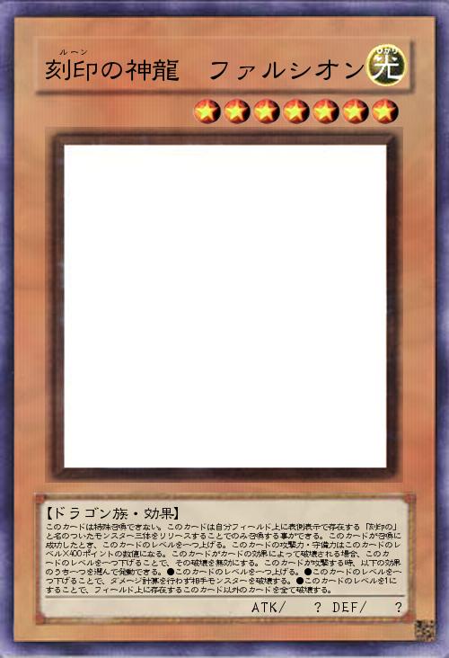 | このカードは特殊召喚できない。このカードは自分フィールド上に表側表示で存在する「刻印の」と名のついたモンスター三体をリリースすることでのみ召喚する事ができる。このカードが召喚に成功したとき、このカードのレベルを一つ上げる。このカードの攻撃力・守備力はこのカードのレベル×400ポイントの数値になる。このカードがカードの効果によって破壊される場合、このカードのレベルを一つ下げることで、その破壊を無効にする。このカードが攻撃する時、以下の効果のうち一つを選んで発動できる。●このカードのレベルを一つ上げる。●このカードのレベルを一つ下げることで、ダメージ計算を行わず相手モンスターを破壊する。●このカードのレベルを1にすることで、フィールド上に存在するこのカード以外のカードを全て破壊する。 | |||