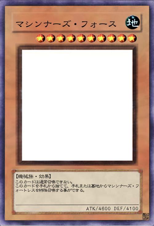 このカードは通常召喚できない。 このカードを手札から捨てて、手札または墓地からマシンナーズ・フォートレスを特殊召喚する事ができる。 |