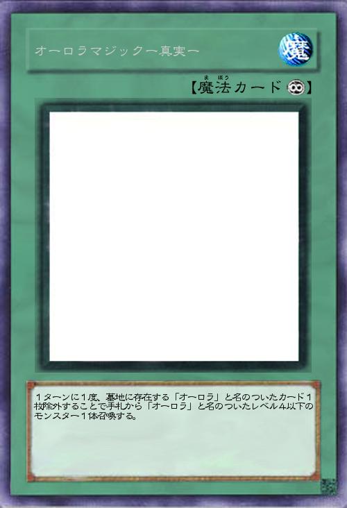 | 1ターンに1度、墓地に存在する「オーロラ」と名のついたカード1枚除外することで手札から「オーロラ」と名のついたレベル4以下のモンスター1体召喚する。 | |||