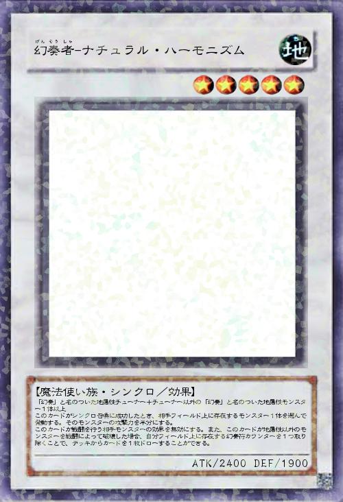 「幻奏」と名のついた地属性チューナー+チューナー以外の「幻奏」と名のついた地属性モンスター1体以上 このカードがシンクロ召喚に成功したとき、相手フィールド上に存在するモンスター1体を選んで発動する。そのモンスターの攻撃力を半分にする。 このカードが戦闘を行う相手モンスターの効果を無効にする。また、このカードが地属性以外のモンスターを戦闘によって破壊した場合、自分フィールド上に存在する幻奏符カウンターを1つ取り除くことで、デッキからカードを1枚ドローすることができる。 |