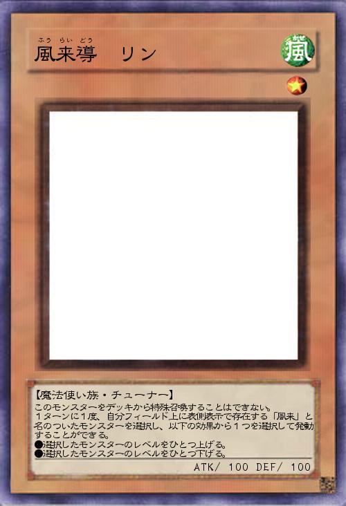 このモンスターをデッキから特殊召喚することはできない。 1ターンに1度、自分フィールド上に表側表示で存在する「風来」と名のついたモンスターを選択し、以下の効果から1つを選択して発動することができる。 ●選択したモンスターのレベルをひとつ上げる。 ●選択したモンスターのレベルをひとつ下げる。 |