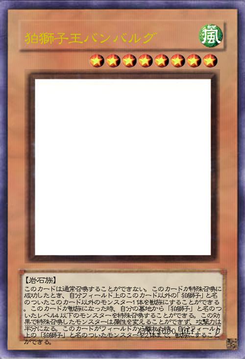 | このカードは通常召喚することができない。このカードが特殊召喚に成功したとき、自分フィールド上のこのカード以外の「狛獅子」と名のついたこのカード以外のモンスター1体を獣族にすることができる。このカードが獣族になった時、自分の墓地から「狛獅子」と名のついたレベル4以下のモンスターを特殊召喚することができる。この効果で特殊召喚したモンスターは属性を変えることができず、攻撃力は半分になる。このカードがフィールドから離れた時、自分フィールド上の「狛獅子」と名のついたモンスターを2体まで、獣族にすることができる。 | |||