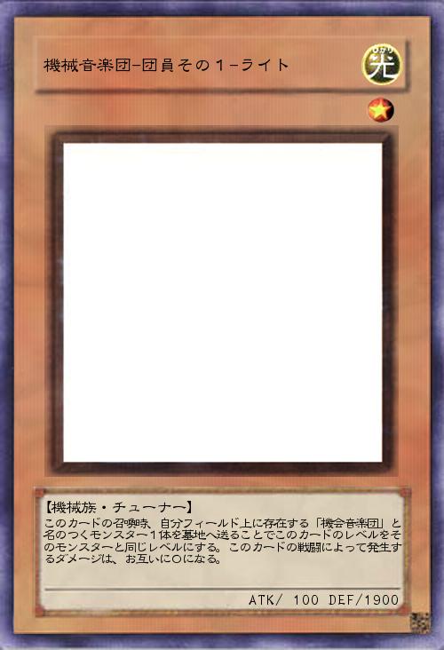 | このカードの召喚時、自分フィールド上に存在する「機会音楽団」と名のつくモンスター1体を墓地へ送ることでこのカードのレベルをそのモンスターと同じレベルにする。このカードの戦闘によって発生するダメージは、お互いに0になる。 | |||