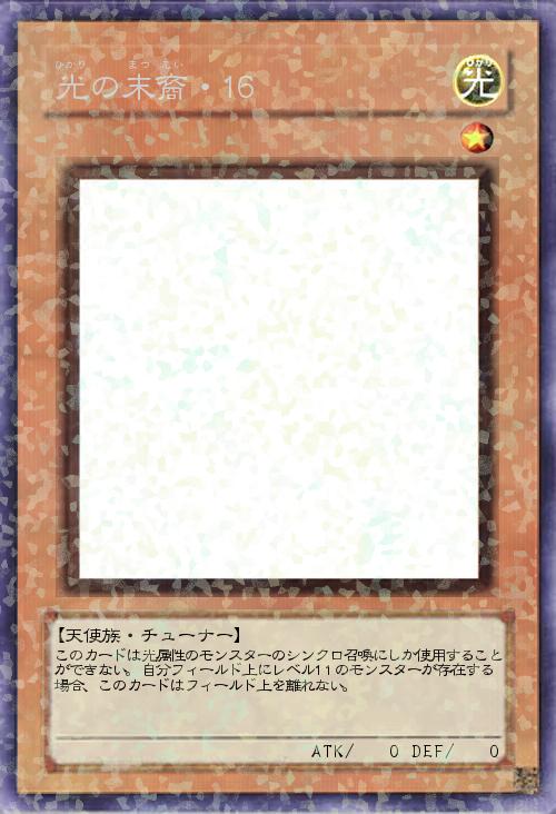 | このカードは光属性のモンスターのシンクロ召喚にしか使用することができない。自分フィールド上にレベル11のモンスターが存在する場合、このカードはフィールド上を離れない。 | |||