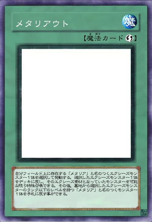 「メタリアの融合解除的なカード。メタリアの指定もついてるし大丈夫..だと思うが...コメントよろしくお願いします。」(2012-11-21 18:50)