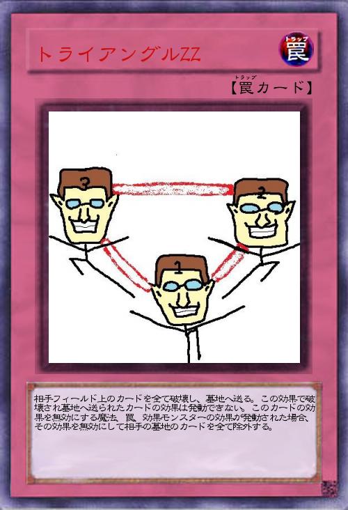 | 相手フィールド上のカードを全て破壊し、墓地へ送る。この効果で破壊され墓地へ送られたカードの効果は発動できない。このカードの効果を無効にする魔法、罠、効果モンスターの効果が発動された場合、その効果を無効にして相手の墓地のカードを全て除外する。 | |||