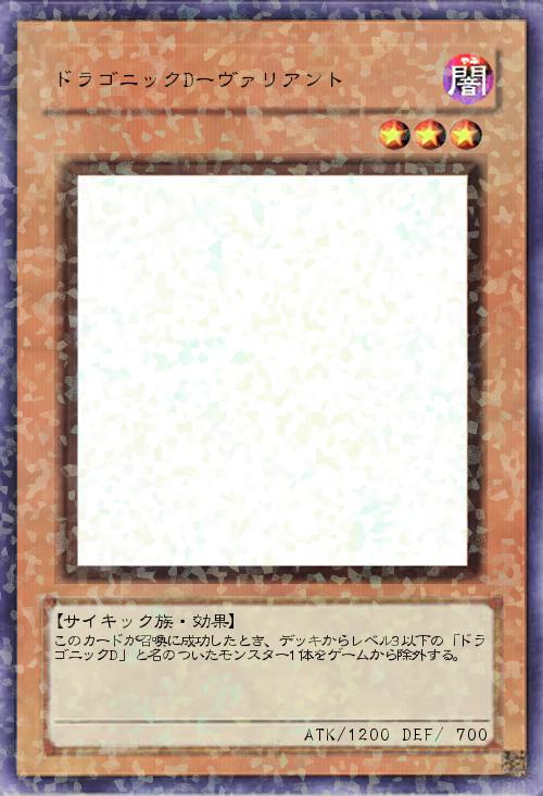 | このカードが召喚に成功したとき、デッキからレベル3以下の「ドラゴニックD」と名のついたモンスター1体をゲームから除外する。 | |||