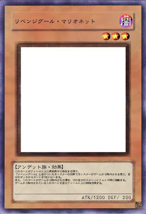 このカードがフィールド上に表側表示で存在する限り、 「リベンジグール」と名のついたモンスターの効果でモンスターがゲームから除外される度に、自分のデッキからカードを1枚ドローする。 また、このカードがゲームから除外された場合、次の自分のスタンバイフェイズ時に発動する。 ゲームから除外されているこのカードを自分フィールド上に特殊召喚する。 |