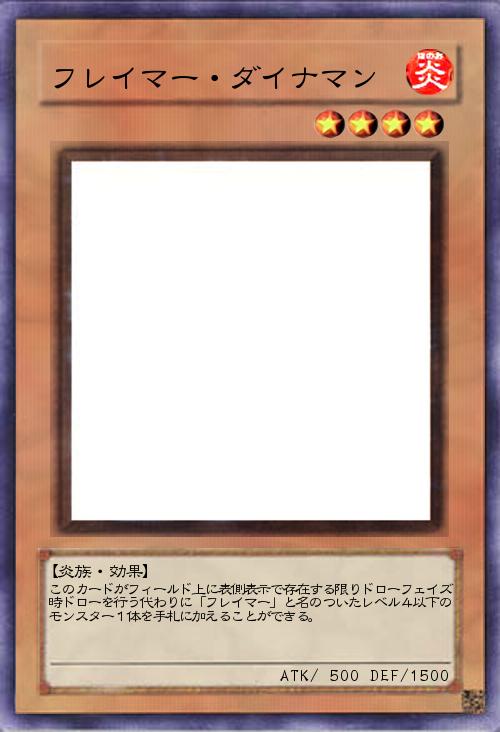 | このカードがフィールド上に表側表示で存在する限りドローフェイズ時ドローを行う代わりに「フレイマー」と名のついたレベル4以下のモンスター1体を手札に加えることができる。 | |||