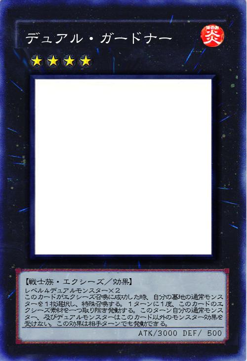 レベル4デュアルモンスター×2 このカードがエクシーズ召喚に成功した時、自分の墓地の通常モンスターを1枚選択し、特殊召喚する。1ターンに1度、このカードのエクシーズ素材を一つ取り除き発動する。このターン自分の通常モンスター、及びデュアルモンスターはこのカード以外のモンスター効果を受けない。この効果は相手ターンでも発動できる。 |