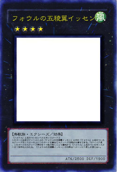 「フォウル」と名のついたレベル4モンスター×2 このカードは自分フィールド上の「フォウルの五稜翼イッセン」以外の「フォウル」と名のついたエクシーズモンスターの上にこのカードを重ねてエクシーズ召喚する事もできる。1ターンに1度、このカードのエクシーズ素材を1つ取り除くことで墓地から「フォウル」と名のついたモンスターを1体手札に加える。「フォウルの五稜翼イッセン」の効果は1ターンに1度しか使えない。 |