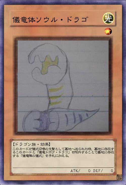 | このカードが儀式召喚の生贄として墓地へ送られた時、墓地に存在するこのカードと「儀竜ドボク・ドラゴ」を除外することで墓地に存在する「儀竜陣の儀式」を手札に加える。 | |||
