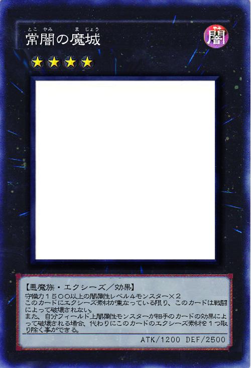 守備力1500以上の闇属性レベル4モンスター×2 このカードにエクシーズ素材が重なっている限り、このカードは戦闘によって破壊されない。 また、自分フィールド上闇属性モンスターが相手のカードの効果によって破壊される場合、代わりにこのカードのエクシーズ素材を1つ取り除く事ができる。 |