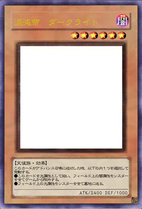 このカードがアドバンス召喚に成功した時、以下の内1つを選択して発動する。 ●このカードを光属性として扱い、フィールド上の闇属性モンスターを全てゲームから除外する。 ●フィールド上の光属性モンスターを全て墓地に送る。 |