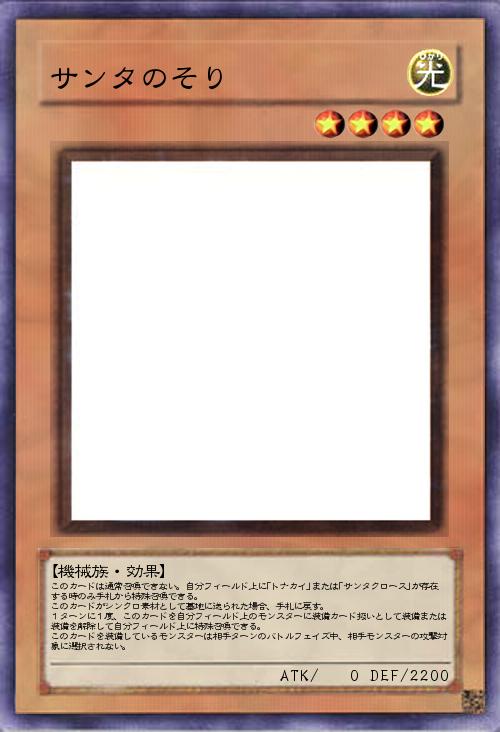 このカードは通常召喚できない。自分フィールド上に「トナカイ」または「サンタクロース」が存在する時のみ手札から特殊召喚できる。 このカードがシンクロ素材として墓地に送られた場合、手札に戻す。 1ターンに1度、このカードを自分フィールド上のモンスターに装備カード扱いとして装備または装備を解除して自分フィールド上に特殊召喚できる。 このカードを装備しているモンスターは相手ターンのバトルフェイズ中、相手モンスターの攻撃対象に選択されない。 |