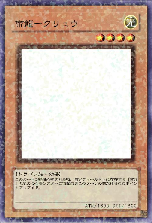 | このカードが特殊召喚された時、自分フィールド上に存在する「帝龍」と名のつくモンスターの攻撃力をこのターンの間だけ600ポイントアップする。 | |||