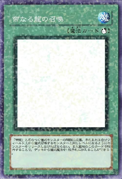 | 「帝龍」と名のつく儀式モンスターの降臨に必要。手札または自分フィールド上から儀式召喚するモンスターと同じレベルになるようにモンスターをリリースしなければならない。また墓地のこのカードを除外することで、デッキから儀式魔法を1枚手札に加えることができる。 | |||