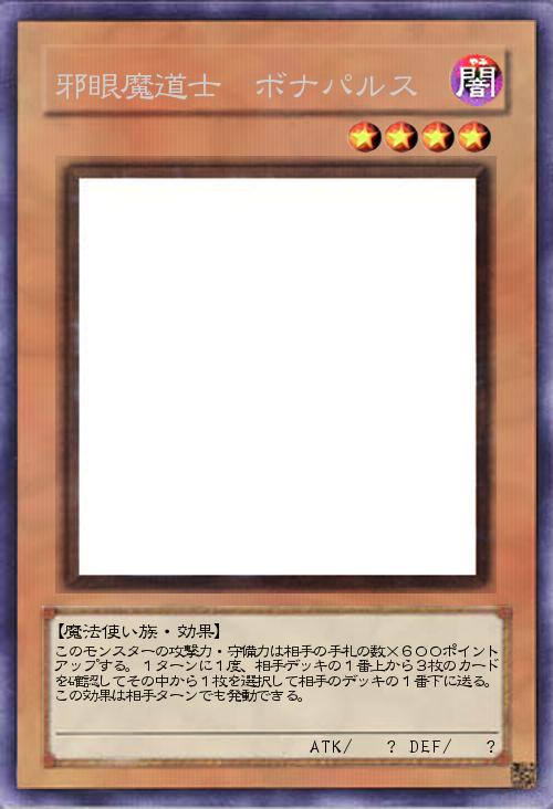 | このモンスターの攻撃力・守備力は相手の手札の数×600ポイントアップする。1ターンに1度、相手デッキの1番上から3枚のカードを確認してその中から1枚を選択して相手のデッキの1番下に送る。この効果は相手ターンでも発動できる。 | |||