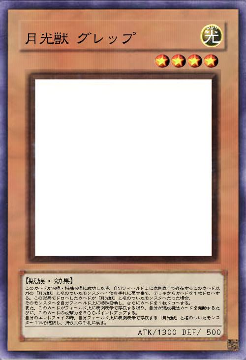 このカードが召喚・特殊召喚に成功した時、自分フィールド上に表側表示で存在するこのカード以外の「月光獣」と名のついたモンスター1体を手札に戻す事で、デッキからカードを1枚ドローする。この効果でドローしたカードが「月光獣」と名のついたモンスターだった場合、 そのモンスターを自分フィールド上に特殊召喚し、さらにカードを1枚ドローする。 また、このカードがフィールド上に表側表示で存在する限り、自分が速攻魔法カードを発動するたびに、このカードの攻撃力を500ポイントアップする。 自分のエンドフェイズ時、自分フィールド上に表側表示で存在する「月光獣」と名のついたモンスター1体を選択し、持ち主の手札に戻す。 |